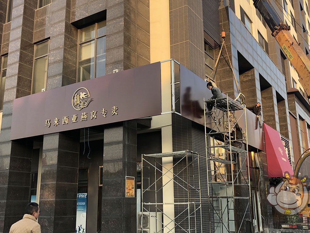 采用鋁塑板四面折彎工藝,不銹鋼鍍鈦金背光字
